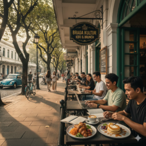 Ilustrasi suasana pagi di kawasan Braga, Bandung (Dok. AI)
